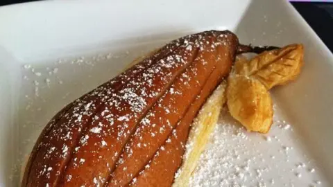 Die Birne ab in den Ofen auf 200 Grad ca. 12-15 Minuten und anschließend mit Puderzucker bestreuen.