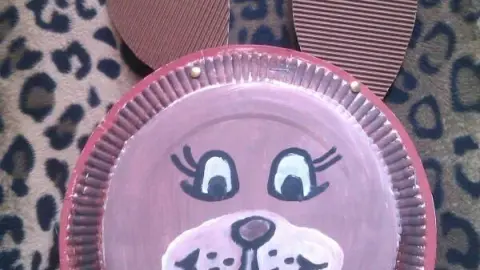 Nun die 2 Pappteller gut zusammen tackern und mit den beiden Klammern die Ohren befestigen, denn dank den Klammern sind die Ohren dann beweglich.