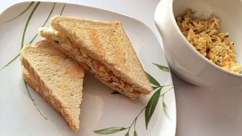 - Nun nur noch nie Toastscheiben etwas vortoasten, Salat drauf und genießen.