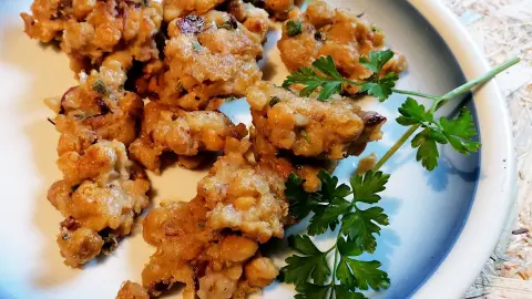 Zum Verfeinern kann man dem Falafelteig noch frisches Koriandergrün oder auch glatte Petersilie hinzufügen.