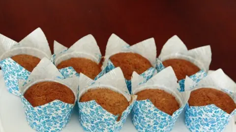 - Den Teig in die Muffinförmchen füllen und bei 175 Grad Umluft 25-30 Minuten backen.