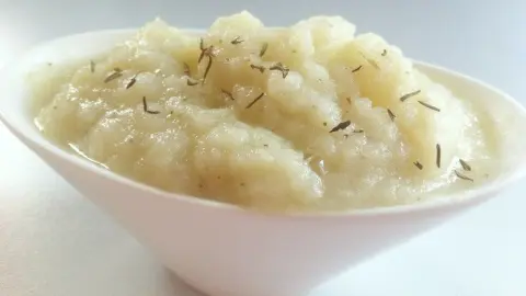 Ein sehr leckeres fluffiges Püree, dazu Hühnerbrust, Fisch und Co. Alles ganz ohne Kohlenhydrate.