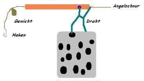 - Von der einen Seite durch den Stiel zur anderen Seite ganz normal die Angelschnur ziehen und dann Gewichte und Haken aufziehen. So ist der Abstand zum Futterkörbchen gewährleistet und kann sich nicht verhaken ;)