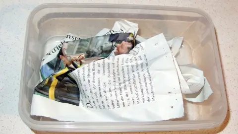 Beim nächsten Gebrauch einfach das Zeitungsknäuel wegschmeißen, denn da ist jetzt der unangenehme Geruch drin!