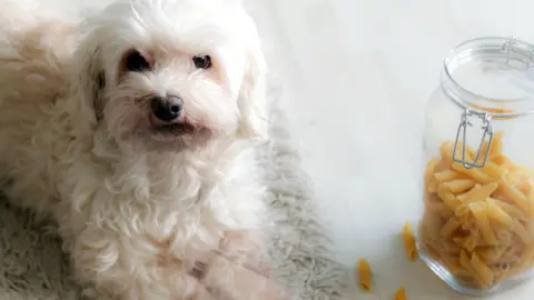 Hatte früher öfters Hunde Leckereien im Handel gekauft, die unser Hund undankbar ablehnte. Nein danke, uninteressant! Okay Hund, ich schmeiß es in den Müll... Nun gebe ich ihm seit Jahren schon ungekochte trockene Nudeln ... aber immer nur 2-3 Stück.