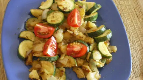 Mein heutiges" Kreativmittagessen": eine Kartoffel-Zucchinipfanne.