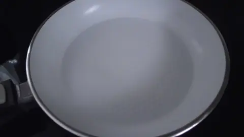 Die Pfanne ist sowohl am Boden als auch im Inneren mit einer Noppenstruktur ausgestattet. Die Keramikbeschichtung verspricht ein fettarmes Braten. Meine Erfahrungen bei der Zubereitung von Eierspeisen ergaben, dass zwar durchaus ohne Fett gearbeitet werden kann, ich aber zukünftig dennoch eine kleine Menge Fett verwenden und empfehlen werde. Dieses soll vor allem als Trenn- bzw. Gleitschicht zwischen Pfanne und Gargut dienen.