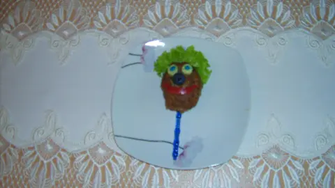 Als Haare habe ich unseren Gartensalat genutzt. Als "Spieße" kann man Eisstiele oder wie ich Häppchenspicker o.ä. benutzen.
