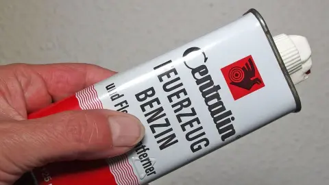 Klebereste von der Haut entfernen: mit Feuerzeugbenzin