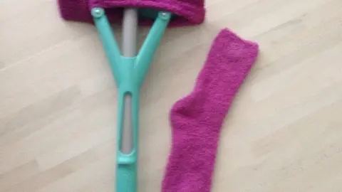 Die Qualität muss aber stimmen, vorher testen, ob sie nicht fuseln. Die Socken wie auf dem Bild einfach auf einen Schrubber ziehen und schon kann es losgehen.