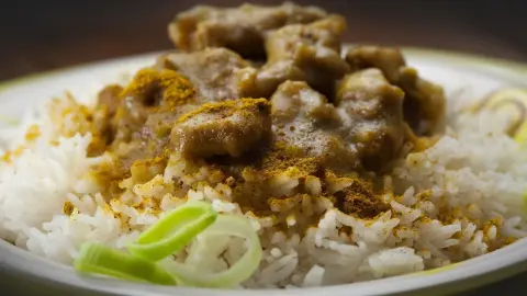 - Den körnig gekochten Reis kann man anschließend unter das Gulasch mischen oder beides getrennt servieren.