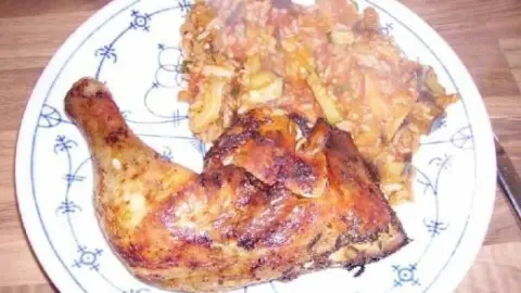 Dazu habe ich eine gebratene Hähnchenkeule serviert, Fleisch kann aber auch mit geschmort werden oder um es vegetarisch zu halten, serviert man es mit mehr Reis oder Sättigungsbeilagen wie Kartoffeln oder als Gemüse-Soße auf Nudeln. Natürlich kann man es auch pur genießen ;)