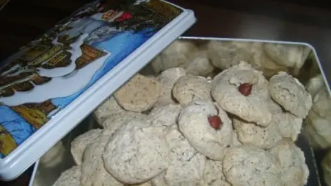 Das Gebäck vorsichtig vom Backpapier lösen und auf einem Kuchengitter vollständig auskühen lassen. ln einer fest verschließbaren Plätzchendose aufbewahren.