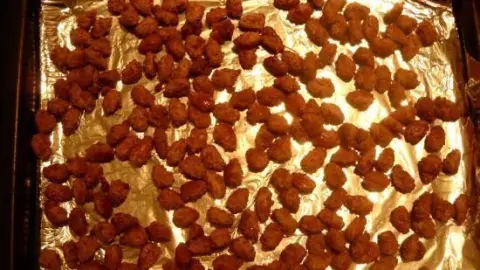 - Die Mandeln nun auf ein zuvor mit Alu oder Backpapier ausgelegtem und eingefettetem Backblech verteilen und trennen.