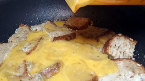 Meine Kinder lieben "gebratene Eierbrote, im Prinzip sind das "Arme Ritter" aus Gaubrot, aber herzhaft gewürzt.