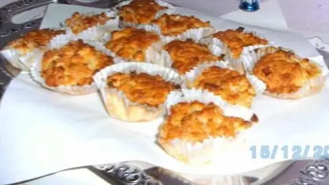 - Je nach Eiergröße, ca. eine 1/2 - 2/3 Tasse Weißmehl und dieselbe Menge Kartoffelstärke einrühren. Alles (schon leicht ausgekühlte) aus dem Topf unterheben und jetzt mit einem Esslöffel, die Papier-Manschetten für Muffins füllen.
