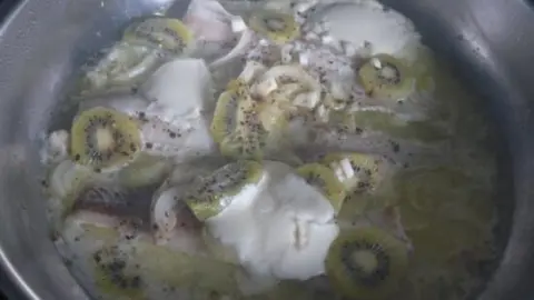 Auch Kiwis, 2 - 3 Stück in Scheiben, schmecken dazu.