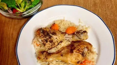 Hähnchenkeulen im Reisbett