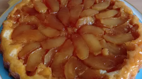 Die Tarte Tatin ist die französische Art, einen Apfelkuchen auf besondere Weise herzustellen, nämlich auf umgekehrte Art. Die Äpfel werden bei diesem Kuchen zuerst in die Form gelegt, karamellisiert und erst dann kommt der Mürbeteig auf das Obst und die Torte wird gebacken. Nachfolgend erkläre ich die Zubereitung und ihr werdet merken, dass es gar nicht so schwierig ist, diese Tarte – wie die Franzosen sagen – nachzubacken, nur halt etwas ungewohnt. Aber das Ergebnis lohnt die Mühe allemal. Viel Spaß beim Nachbacken wünsche ich und guten Appetit beim Verzehr zum Kaffee.