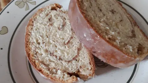 - Puderzucker mit Wasser mischen und auf den beiden Rollen verteilen.
