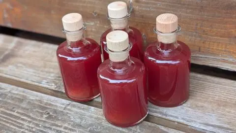 - Nun in kleine Flaschen à 200 ml umfüllen und die Flaschen mit einem Holzkorken schließen.