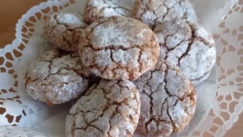 - Den Teig lässt man jetzt 10 Minuten ruhen und formt sodann mit feuchten Händen kleine Kugeln und wälzt diese dann in Puderzucker.