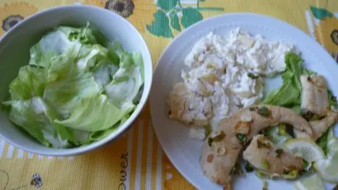 Dazu passen Kopfsalat und Pellkartoffeln.