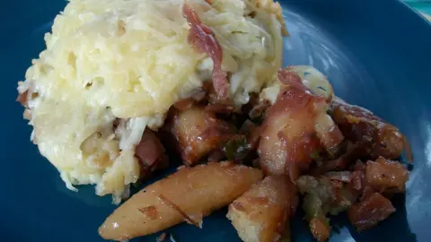 - Jetzt das Blaukraut untermischen und alles in eine ausgebutterte Auflaufform geben.
