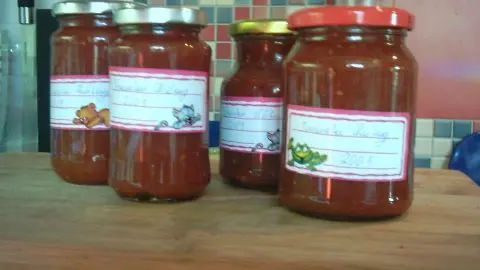 - Wer möchte, kann die noch heiße Sauce in Einmachgläser geben, diese schön voll machen, auf den Deckel stellen zum Abkühlen und so konservieren.