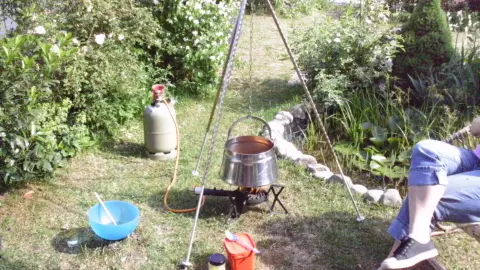 - Nach einer gut halben Stunde Kochzeit das Vegeta-Pulver hinzugeben und das Ganze noch einmal gut eine Stunde unter ständigem Umrühren kochen.