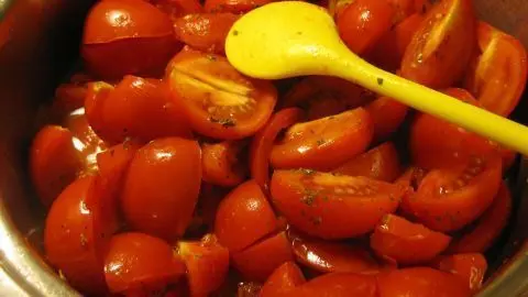 - In etwas Olivenöl andünsten, dann ca. 20 Minuten köcheln, bis die Tomaten zerfallen und gut durchgekocht sind.