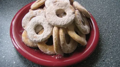 - In einer Kasserolle Öl heiß machen und die Kränzchen bei mittlerer Temperatur ausbacken, ähnlich wie Krapfen.