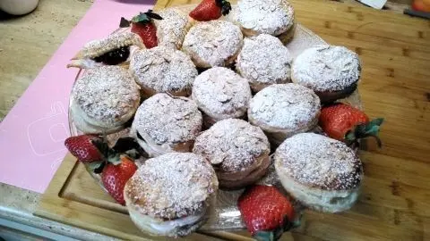 Und wieder eine neue Variation: Blätterteig-Kreise mit einer himmlischen Cremefüllung und einem Beerenragout. Man könnte auch „Blue Velvet” sagen, was so viel wie blauer Samt bedeutet. Schon der Anblick verspricht einen himmlischen Genuss. Und die Vorfreude darauf, diese leckeren Dinger bei einer guten Tasse heißem Kaffee zu genießen, ist groß. Probiert es einfach mal aus!