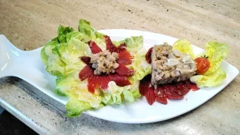 - Nun die Vinaigrette auf den Salatblättern verteilen.