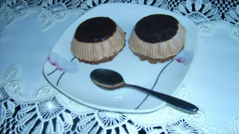 - Die Schokosahne auf die 12 Förmchen verteilen.