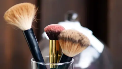 Nun die Pinsel hineinstecken und auf die Schminkkomode stellen.