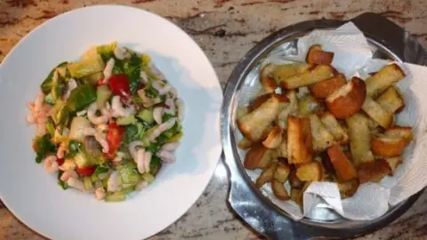 "Wie, es gibt nur Salat?" wird hier wohl keiner sagen, denn durch die leckeren Knoblauchcroutons wird jeder satt.