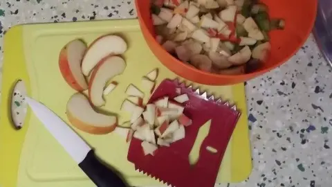 Ich habe immer viel GEmüse klein zu schnippeln, da wird es mir auch immer lästig, wenn ich vom Brettchen runter schiebe in die Schüssel und irgendwie wollen die Stückchen immer vorbei rutschen...😠 und das zusammensammeln ist grrrr...lästig. Mir jedenfalls😡