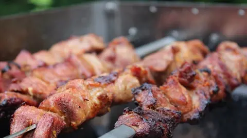 Die Grillsaison steht vor der Tür. Die Spieße vor dem Verwenden mit Öl einreiben. Das Fleisch löst sich dann leichter.