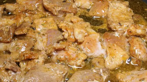 Fleisch in dieser Marinade 2 - 5 Stunden einlegen, (gerne gelegentlich mal durchmischen), Marinade entsorgen, Fleisch abtropfen lassen und anbraten.