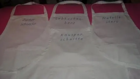 So beschloss ich, weiße Schürzen für die Lieben zu kaufen und sie zu verzieren. Also erst einmal Rezepte raus gesucht, die auch auf Personen passen.
