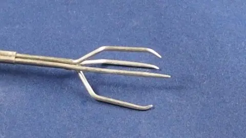 Zum Halten der heißen Kartoffel benutzt man eine dreizinkige Gabel. Mit der Zeit scheint sie wie ausgeleiert, die Kartoffel rutscht runter, wenn man sie nicht ständig nach oben hält. Die drei Zinken ganz leicht nach innen biegen und die Gabel hält die Kartoffel wieder fest.