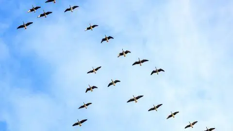 huch! Was macht denn dieser große Vogelschwarm am Himmel? Wo wollen die alle nur hin? Das sind sogenannte Zugvögel. Und die denken sich: „Hey, ab in den Süden!“ Denn ab Herbst wird es wieder kalt und ungemütlich. Kein Wunder, dass sie da lieber abhauen wollen. So ähnlich wie manche Deutsche, die zu dieser Zeit in den Urlaub fliegen. Mit dem großen Unterschied, dass die Vögel das nicht freiwillig machen.