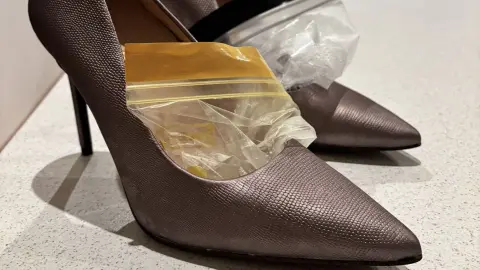 - Steckt jeweils einen Wasserbeutel vorsichtig in einen Schuh. Schiebt ihn so weit wie möglich nach vorne in die Spitze, dorthin, wo es am meisten drückt. Der Beutel sollte den Schuh von innen gut ausfüllen.