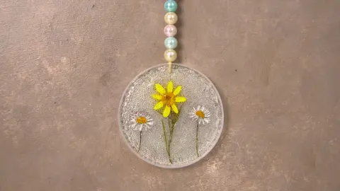 - Darüber kommt noch eine zweite Schicht Kleber, damit alles gut eingeschlossen ist. Lasse deinen Sonnenfänger nun über Nacht trocknen – je nach Kleber kann es auch länger oder kürzer dauern.