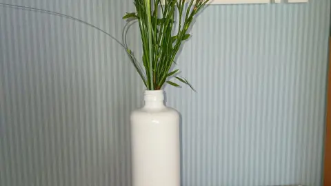 Ich wollte schon lange eine schlichte, weiße Vase im Vintage-Look. Also habe ich meinen Mann gebeten, mir eine alte Steingutflasche (z. B. Schinkenhäger, Steinhäger o. Ä.) dafür zu lackieren. Gesagt, getan – und das Ergebnis gefällt mir richtig gut.