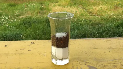 Ein schönes Windlicht (kleine Vase, schönes Trinkglas oder ähnliches) mit einigen Zentimeter Zucker befüllen. Danach eine Schicht Kaffeebohnen darauf. Dann nur noch ein Teelicht reinstellen. Wer mag, kann noch eine Schleife drumrum wickeln.