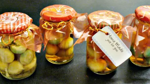- Nach einer Ruhezeit von ca. 5 Wochen ist alles gut durchgezogen und kann nun in der Küche eingesetzt werden: